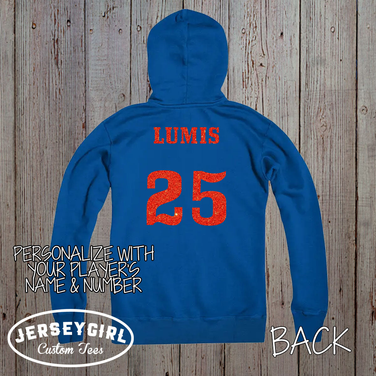 Show your love for your favorite softball player with our My Heart is on That Field softball hoodies! Personalize your My Heart is on That Field hoodie with your player's name and number. Choose your glitter colors to match your team colors. Or customize this glitter softball sweatshirt however you choose!